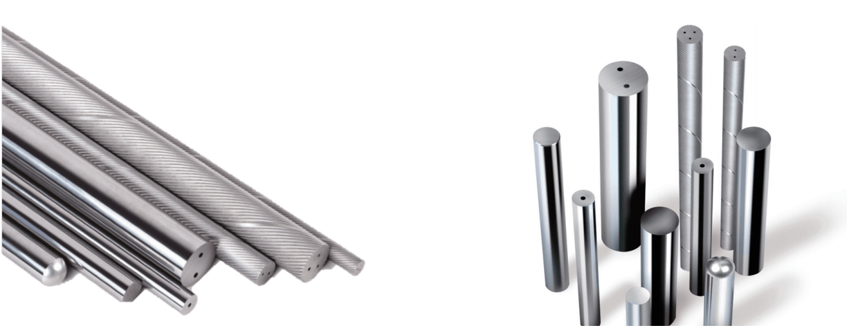 Wir bieten ein umfassendes Lagerprogramm an rohen und geschliffenen VHM-Stäben, massiv, mit Kühlkanälen und mit Fasen.